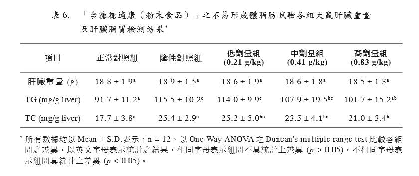 幅度為11.9%;膽固醇濃度下降的幅度為 17.3%。 綜合以上試驗結(jié)果,臺灣糖業(yè)股份有限